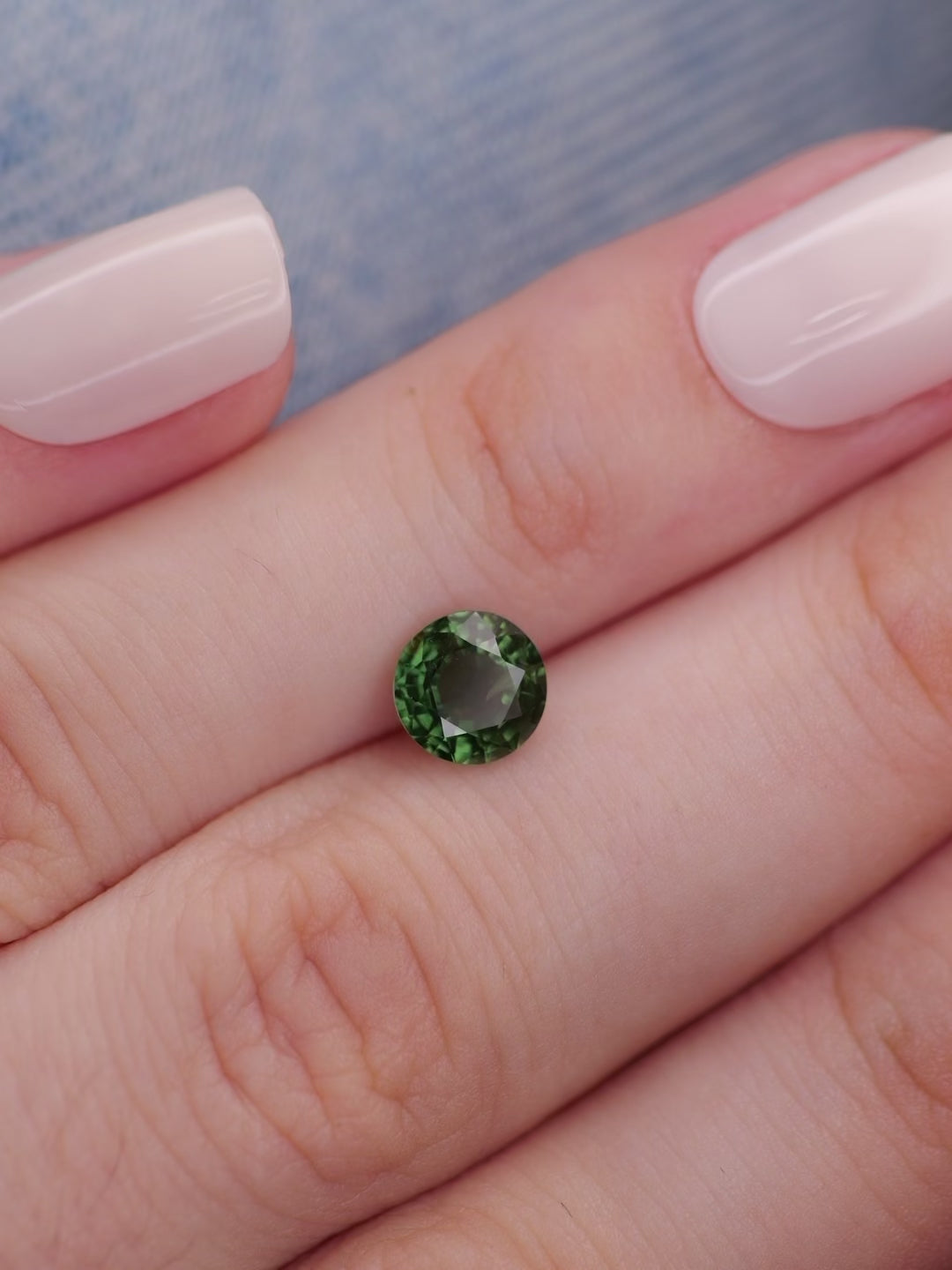 Sapphire | natural, green color, round-cut, 6mm, 1.1ct