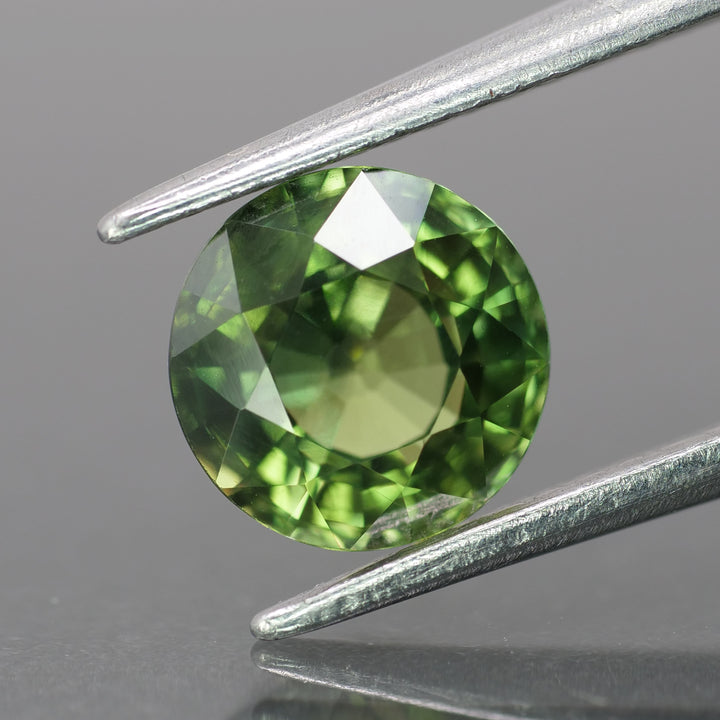 Sapphire | natural, green color, round-cut, *7mm, 1.8ct