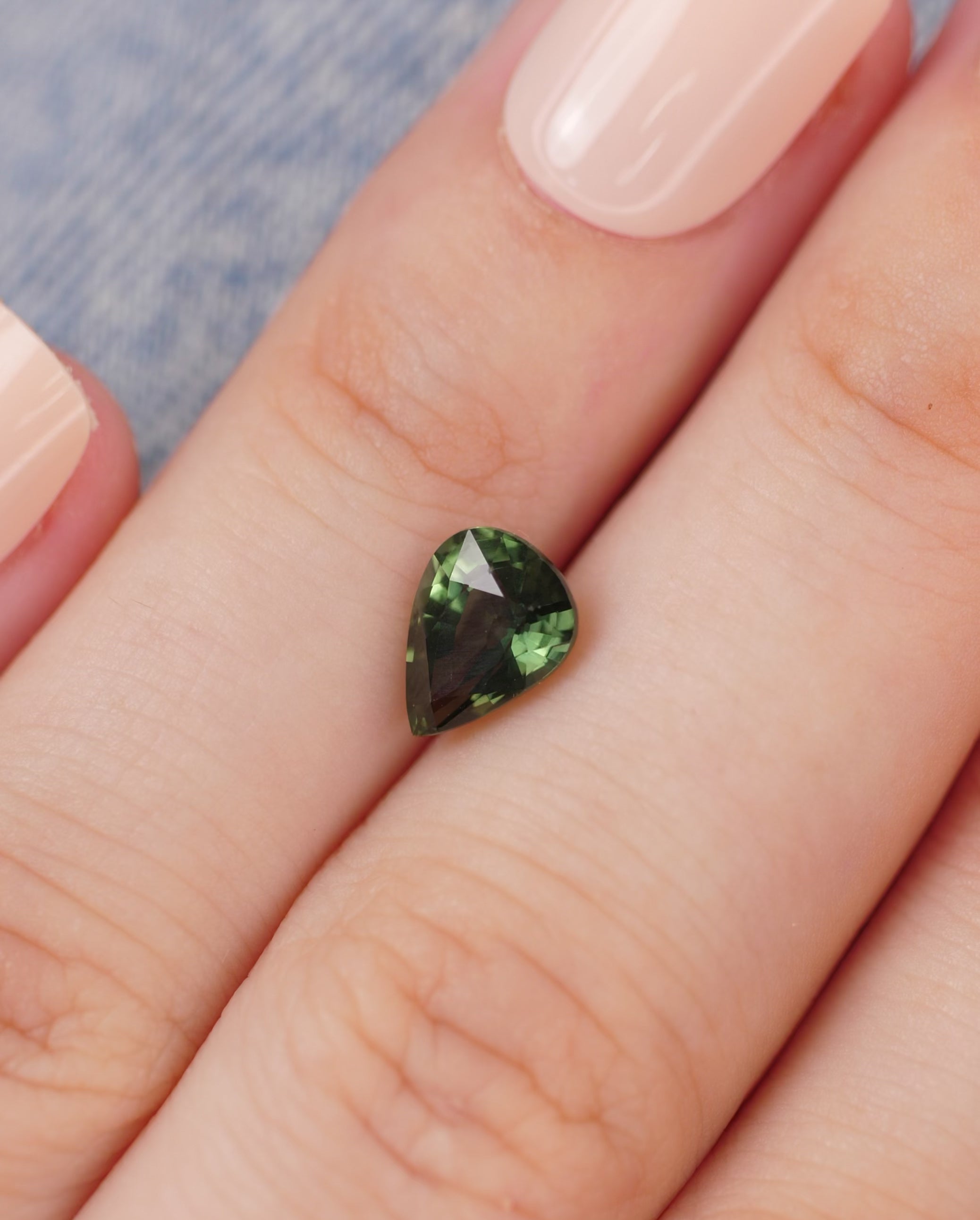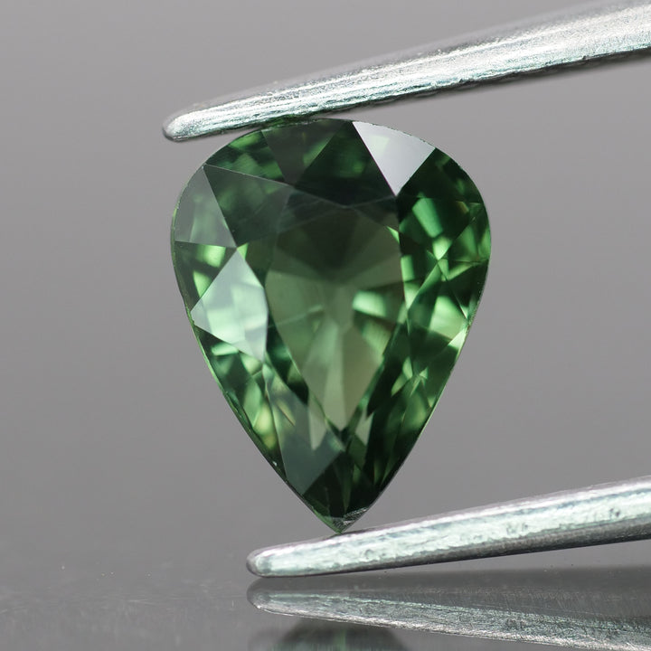 Sapphire | natural, green color, pear-cut, 8x6mm, *1.4ct