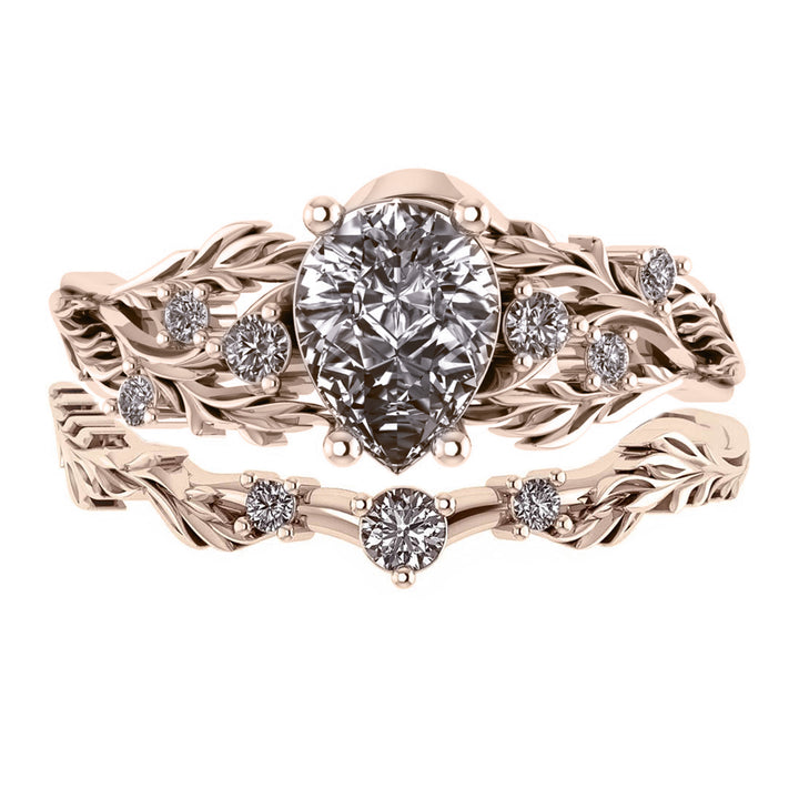 Japanese Maple | bridal ring set for pear cut gemstone 8x6 mm