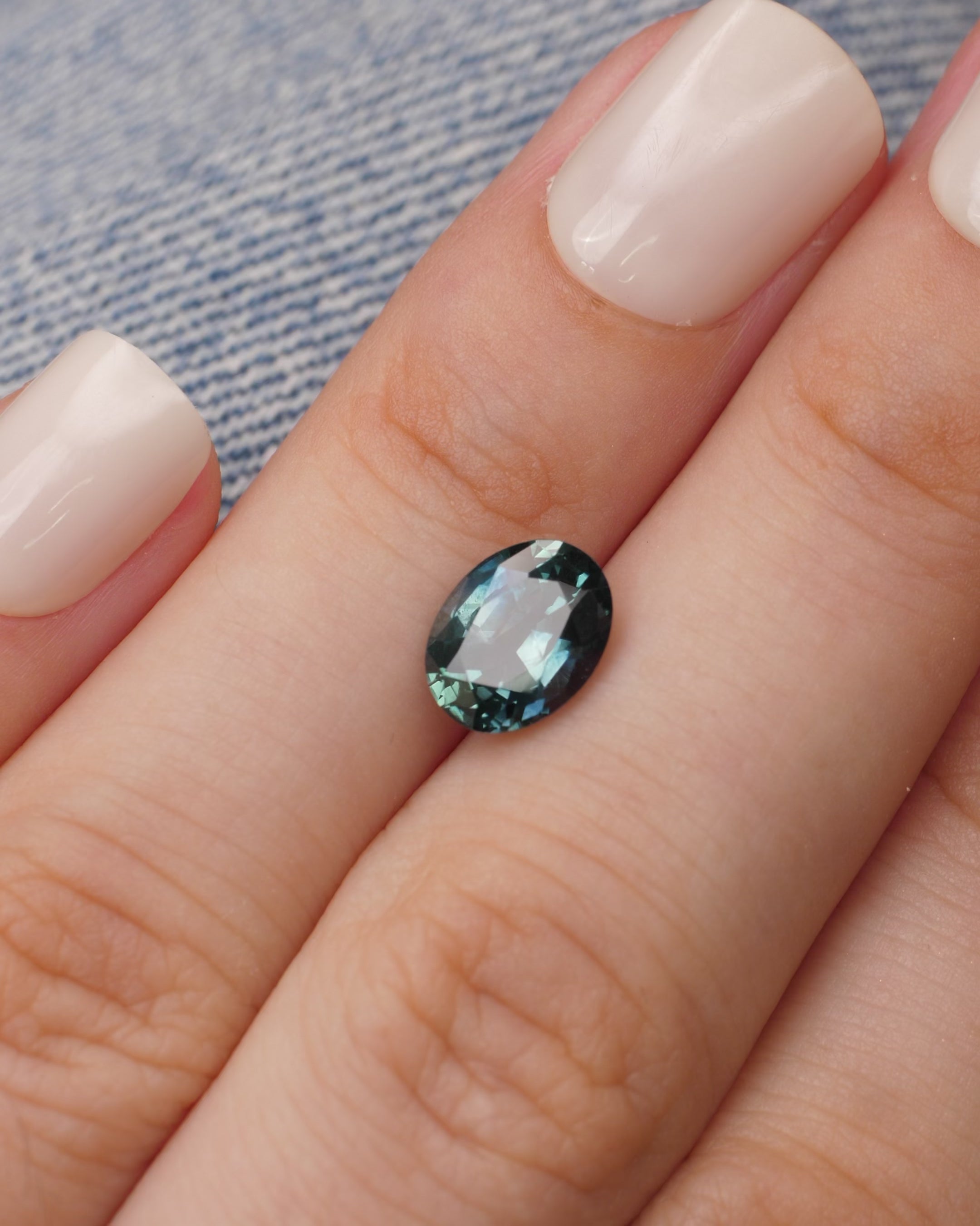 Sapphire | natural, teal color, oval-cut, *8x6.5mm, 1.9ct
