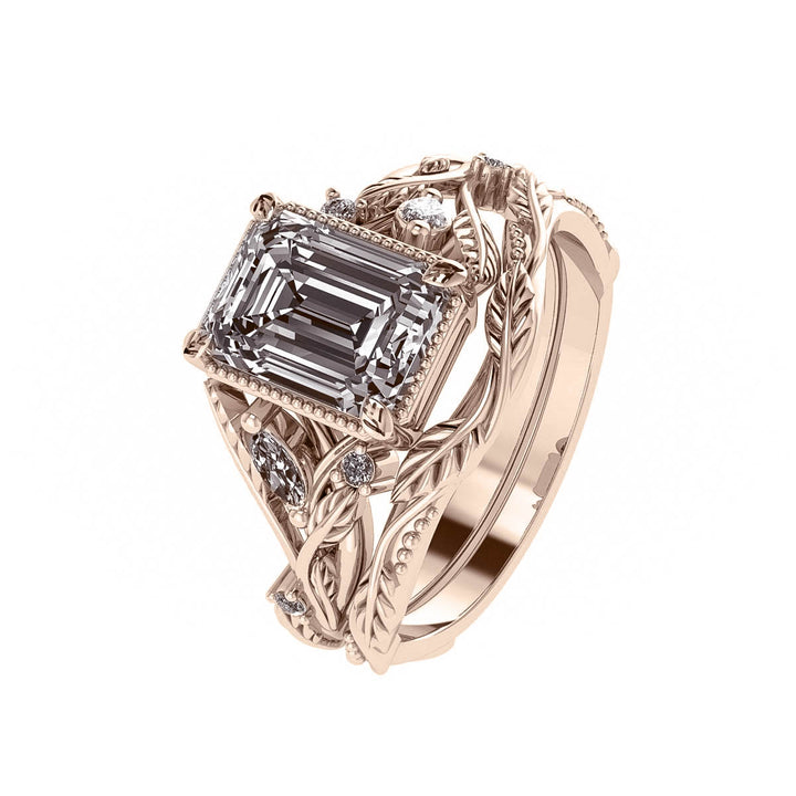 Patricia asymmetric | custom bridal ring set for emerald cut gemstone 8x6 mm