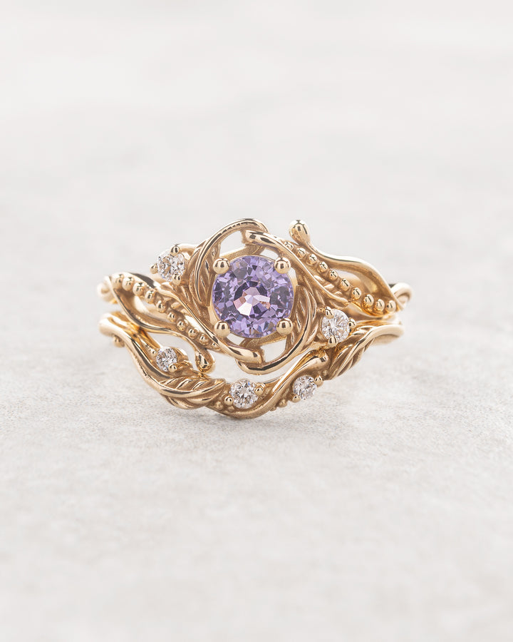 Rare purple sapphire engagement ring with matching wedding band / Undina