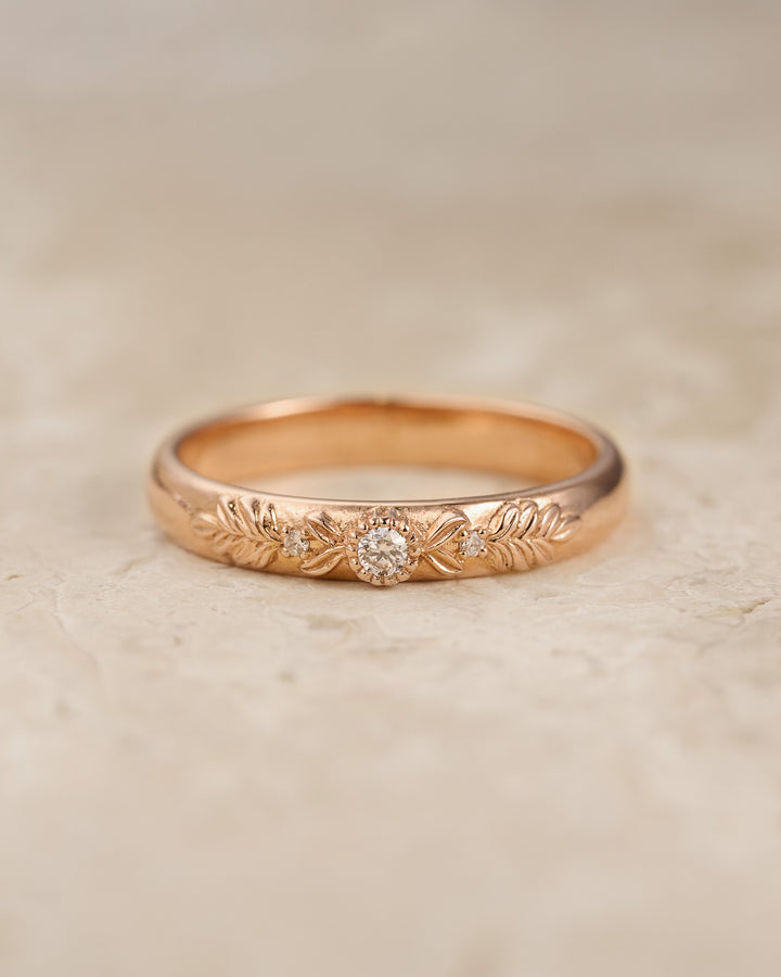 READY TO SHIP: Rose gold wreath wedding band with three lab grown diamonds, AVAILABLE RING SIZE 5.5US