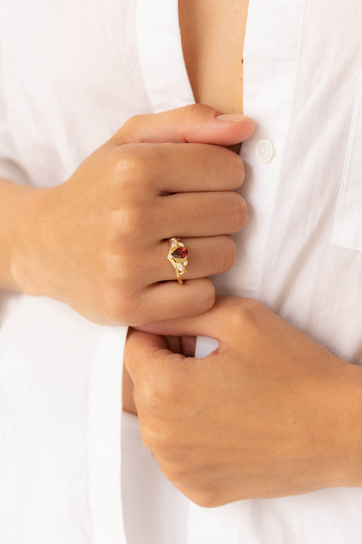Diamond and garnet engagement ring, elvish proposal ring / Swanlake