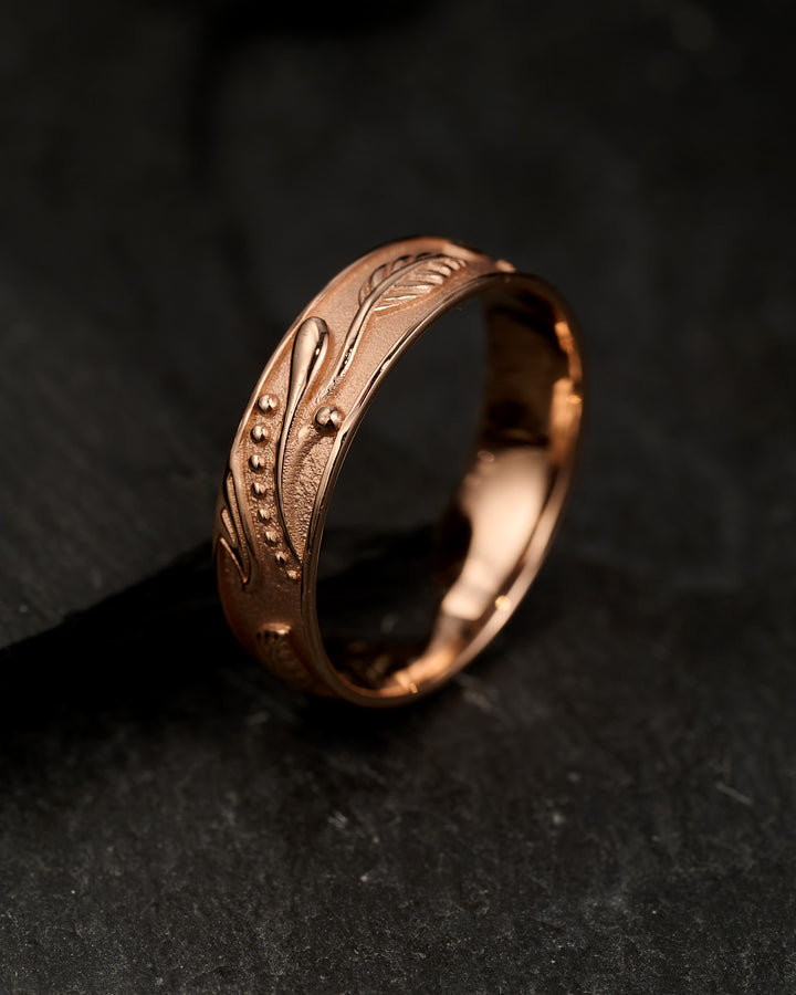 Nature themed wedding ring is comfortable for everyday wear. Will be made in requested size and desirable gold colour.