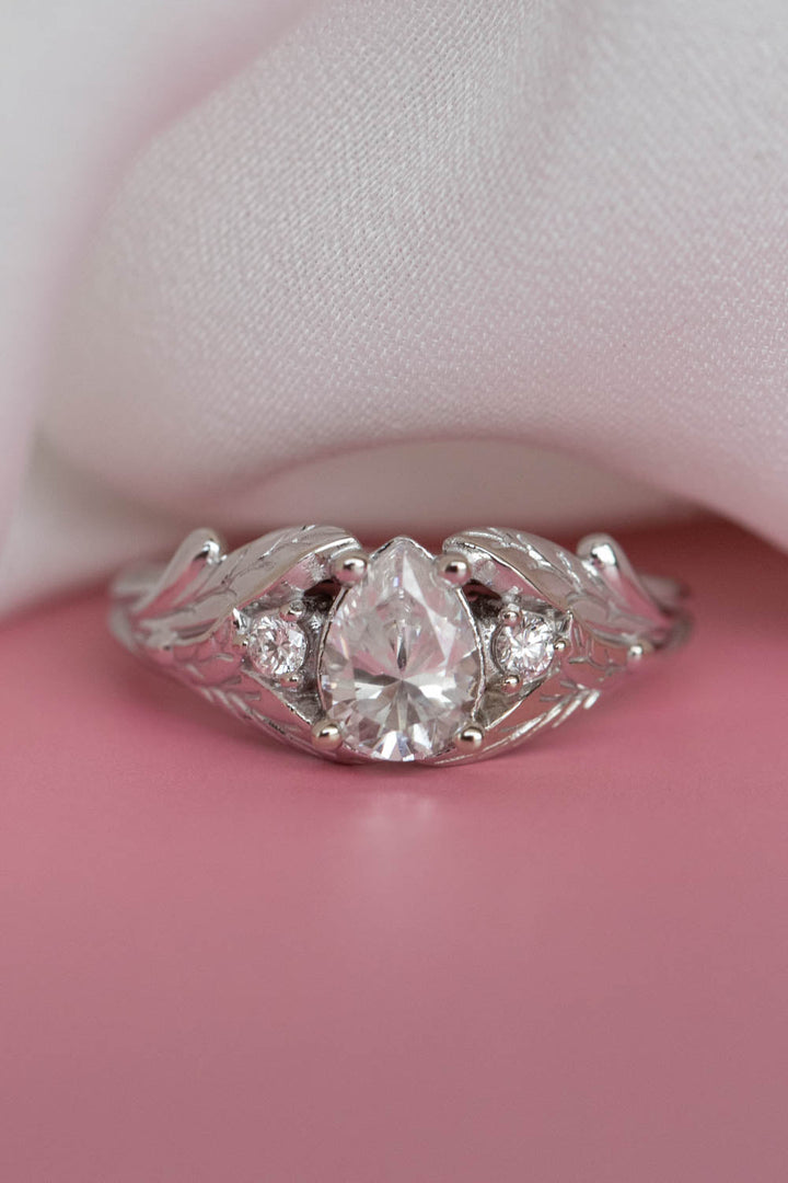 READY TO SHIP: Wisteria ring in 14K white gold, pear cut moissanite 7x5 mm, moissanites, RING SIZE 4.5 - 7.5 US
