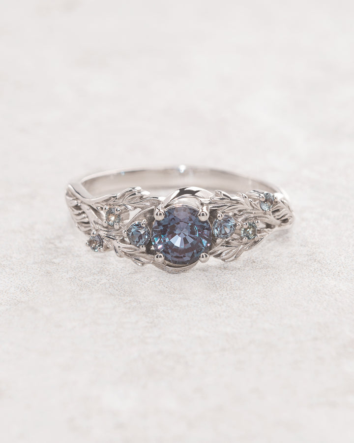 READY TO SHIP: Japanese Maple engagement ring with alexandrites, 14K white gold, RING SIZES: 5.5 - 8.5 US - Eden Garden Jewelry™