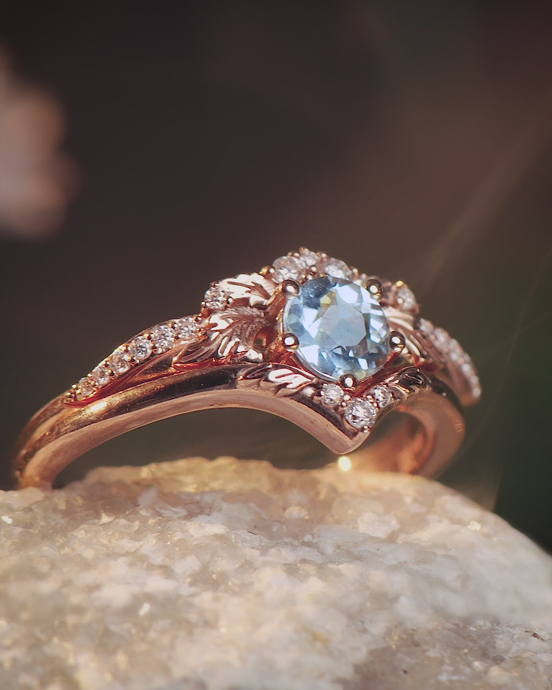 READY TO SHIP: Amelia ring with aquamarine and diamonds, 14K rose gold, RING SIZES: 5.5 - 8.5 US