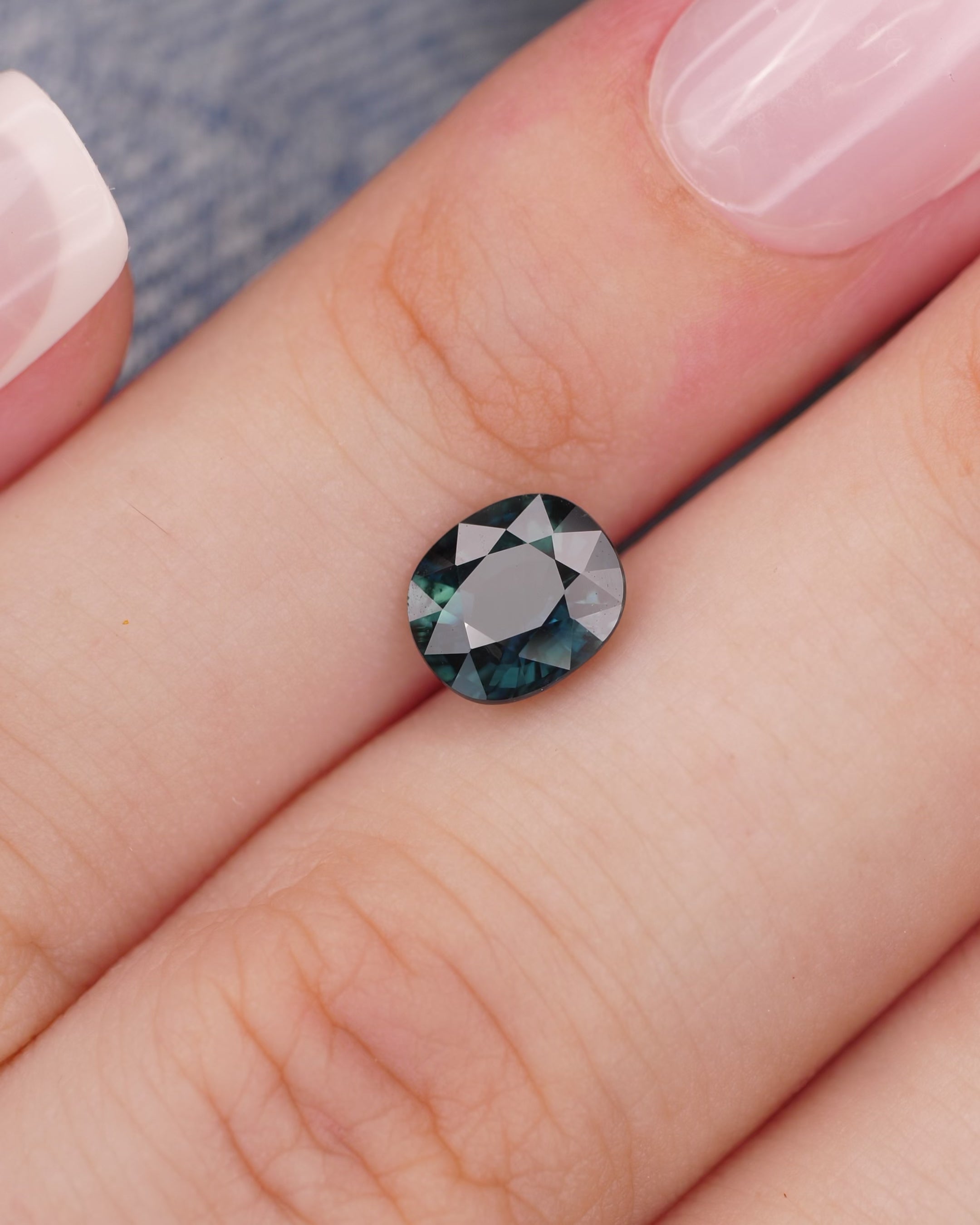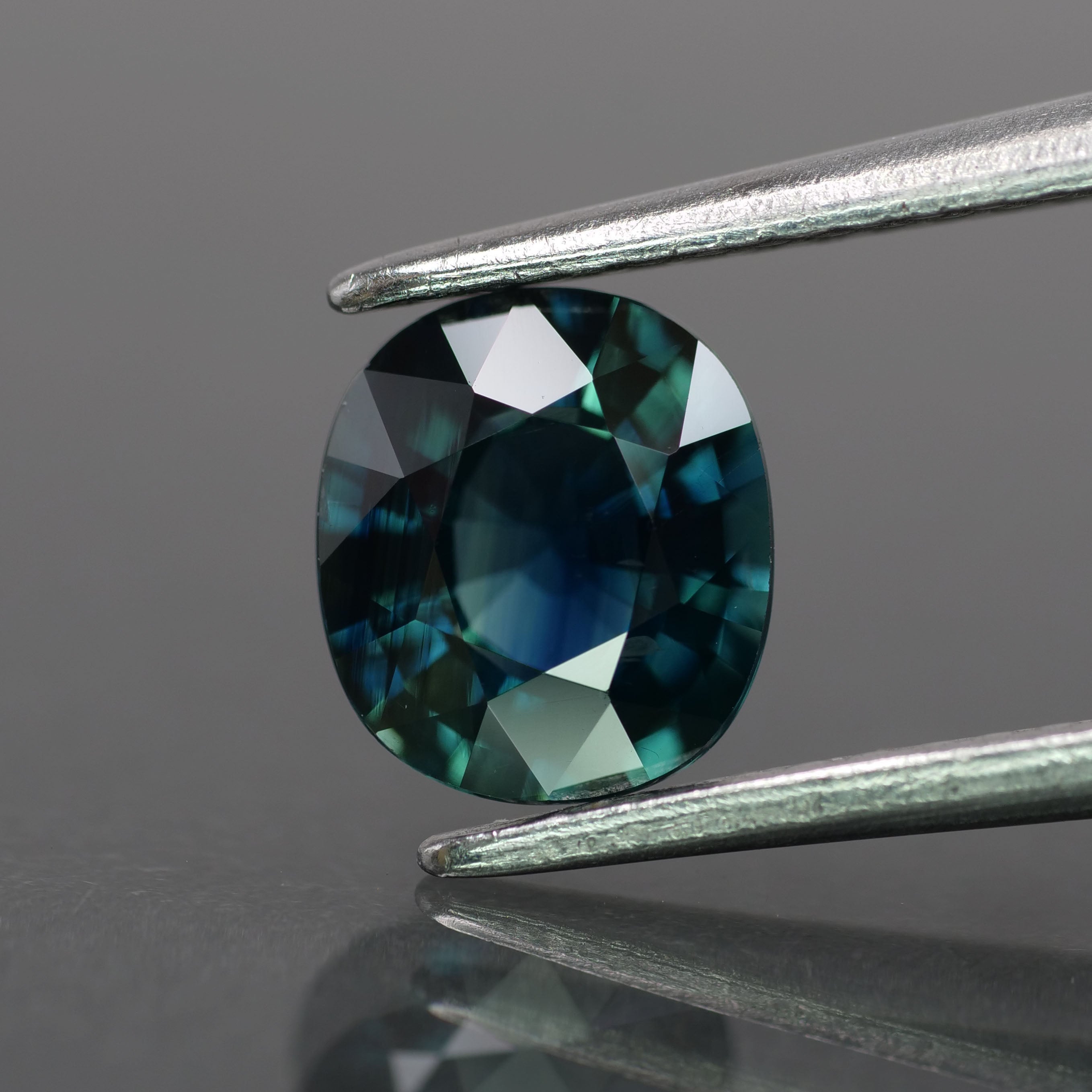 Sapphire | natural, teal color, cushion-cut, *6.5x6mm, *1.2ct