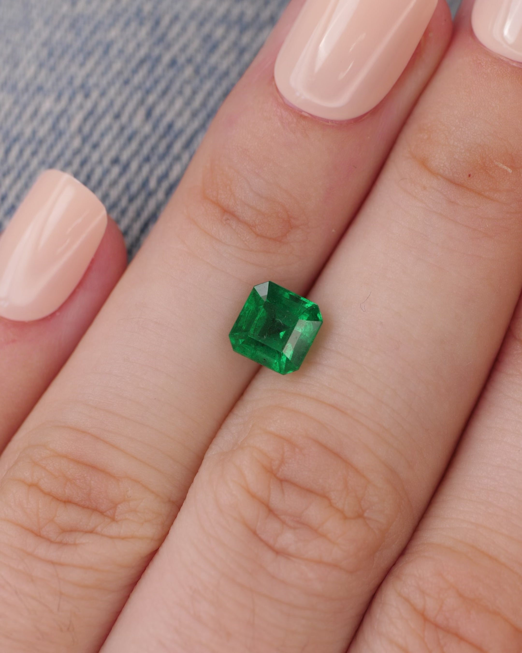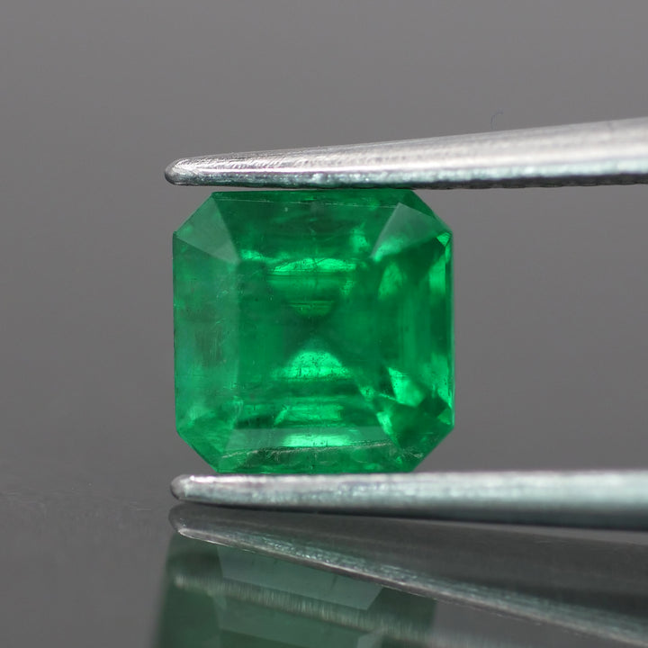 Emerald | IGI certified | natural, deep bluish green color, square-cut, 6mm, 1.25ct, Zambia