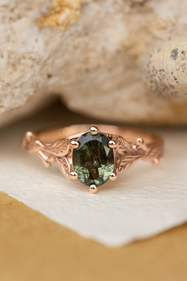 READY TO SHIP: Freesia Rutile peridot engagement ring rose gold, 8x6 mm oval cut, AVAILABLE RING SIZES: 5.5 - 8.5 US