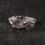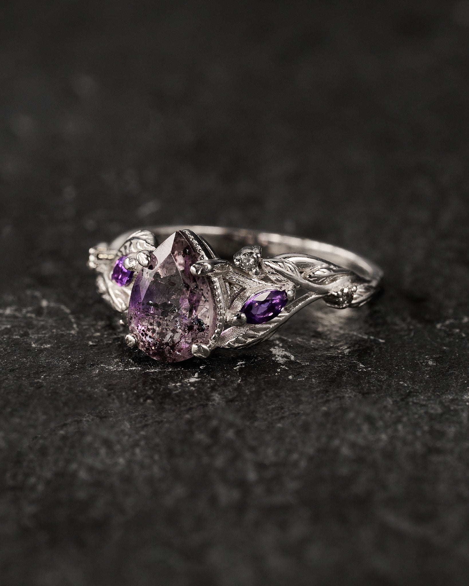 READY TO SHIP: Patricia ring in 14K white gold, melody quartz 9x6mm, accent amethysts & diamonds, AVAILABLE RING SIZES: 5.5 - 8.5 US