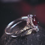 Halo engagement ring with 1.5 carat lab ruby, white gold leaf engagement ring  / Florentina - Eden Garden Jewelry™