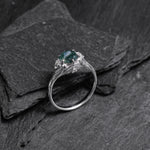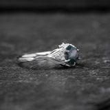 Dedicated to the love of mother nature, this ring has been designed for people who want to stand out from the crowd and represent their individuality and tender feelings. It features a central hexagon cut gemstone, held together by carefully scattered accent gemstones between the leaves.