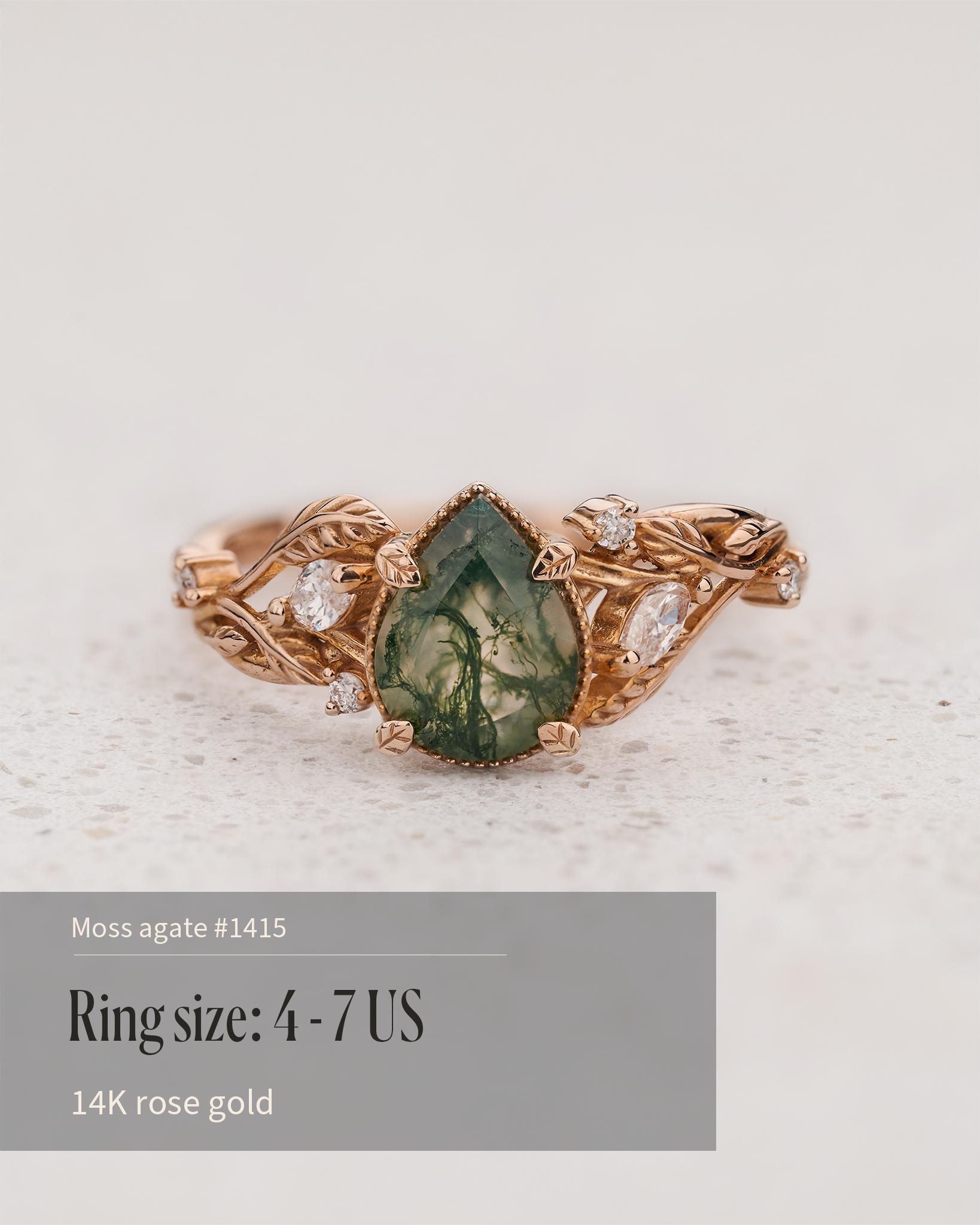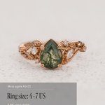 READY TO SHIP: Patricia ring in 14K or 18K rose gold, natural moss agate pear cut 8x6 mm, accent lab grown diamonds, AVAILABLE RING SIZES: 4.5 - 9.5 US