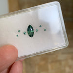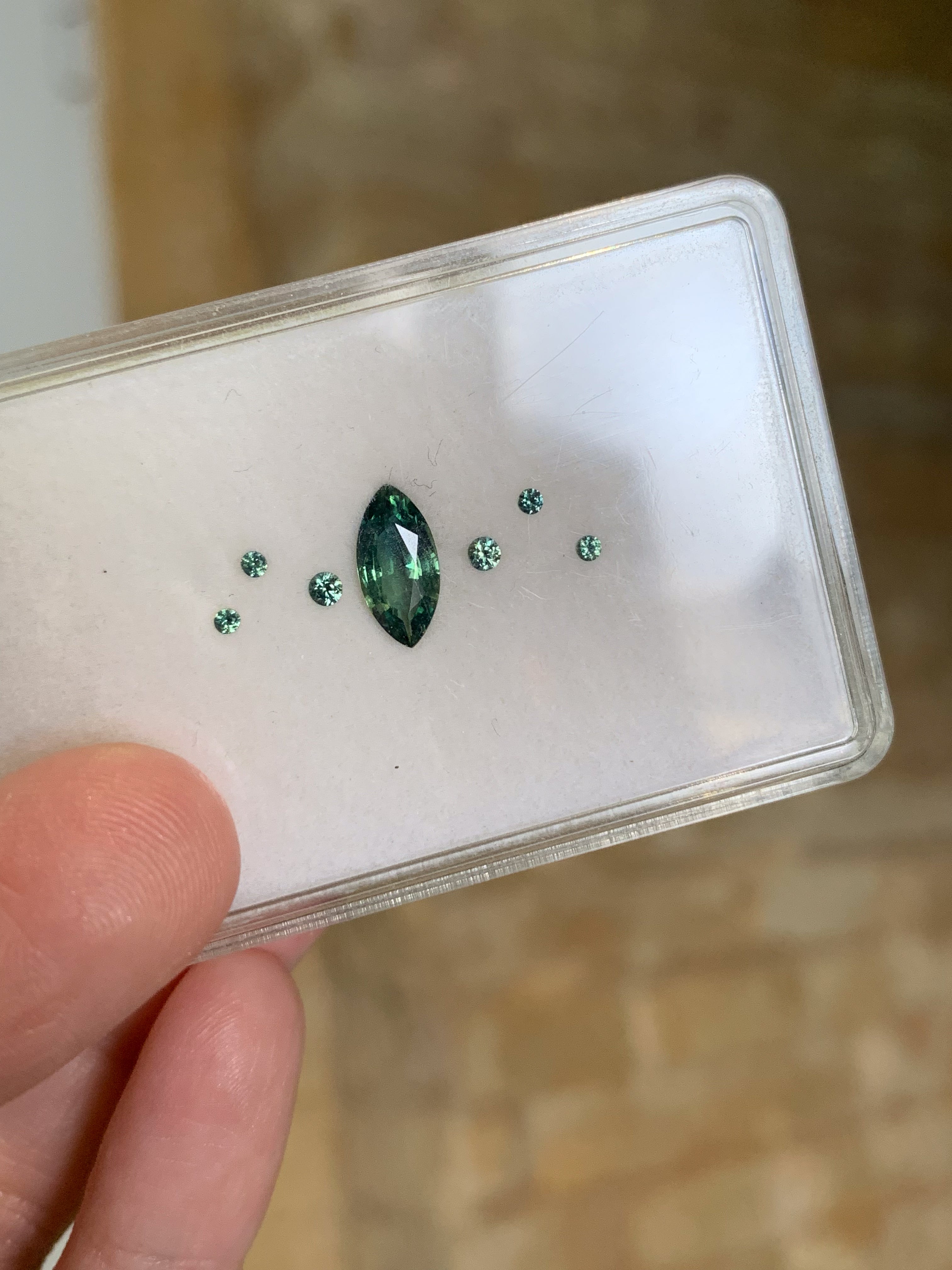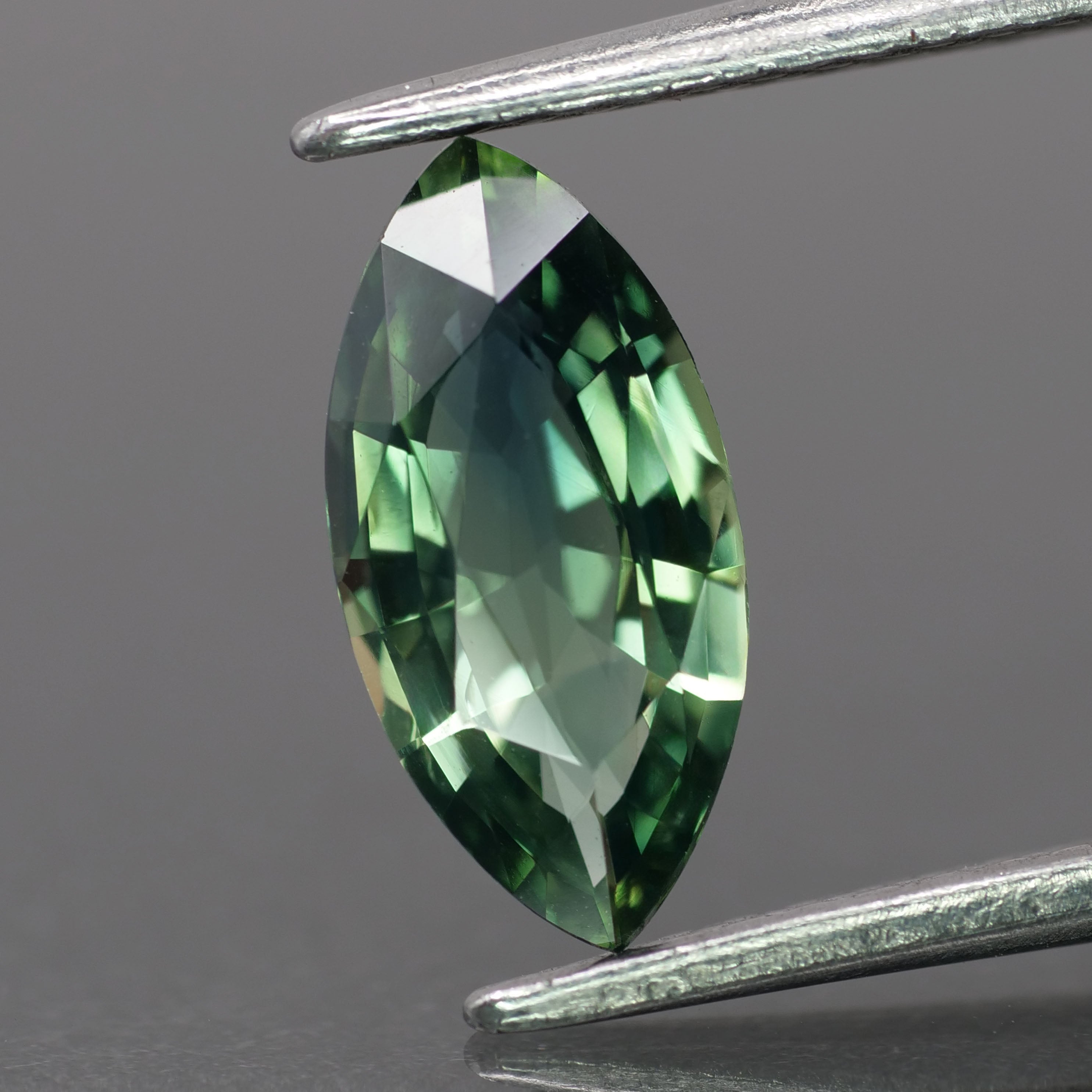 Central gemstone: natural sapphire, green, marquise-cut, 10x5mm, *1.1ct