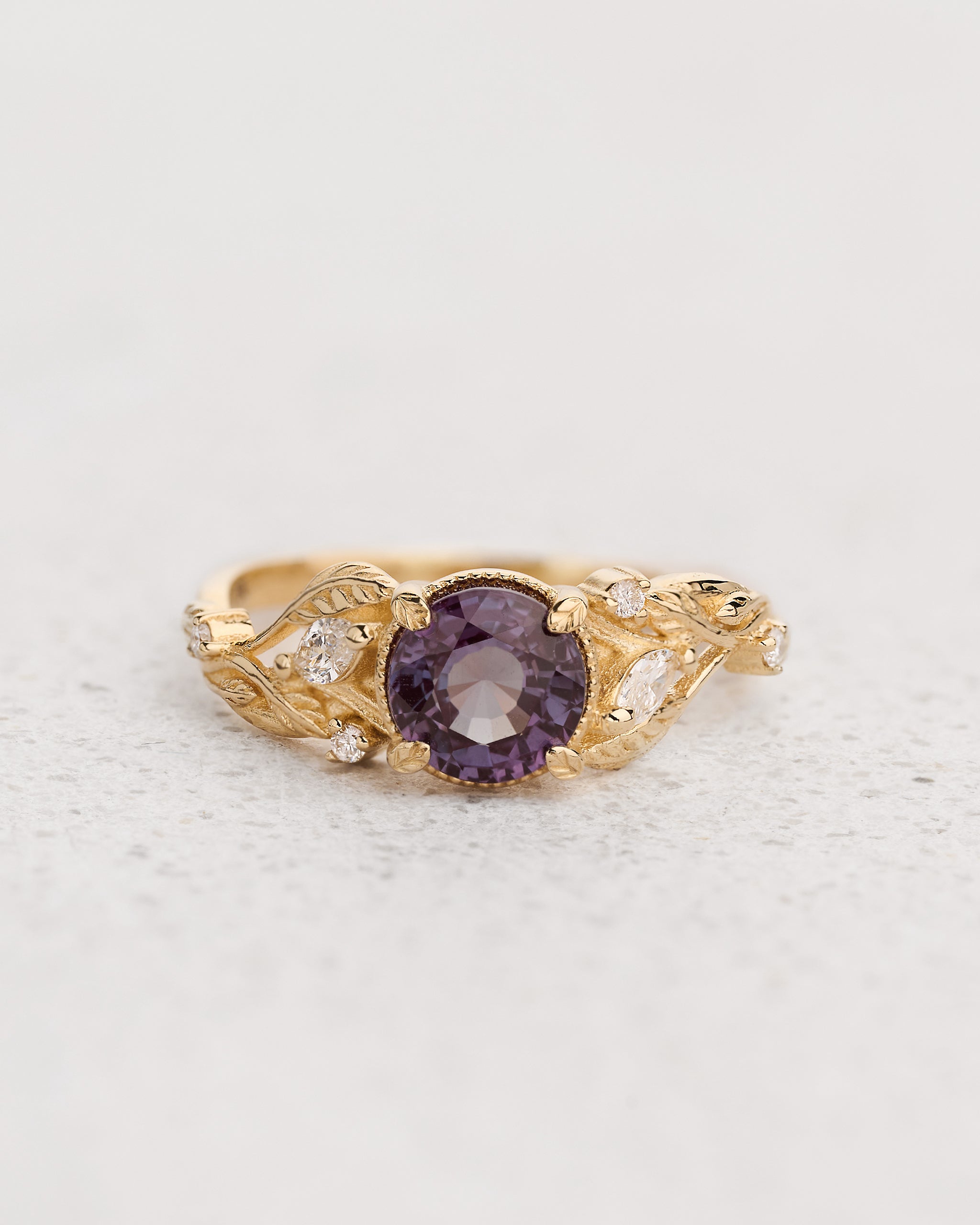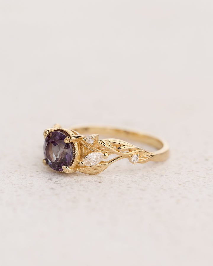 Engagement Ring with Round Color-Changing Alexandrite / Patricia