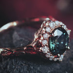 Gorgeous teal sapphire engagement ring with diamond halo, nature inspired gold ring with 2.3 carat sapphire and diamonds / Florentina - Eden Garden Jewelry™