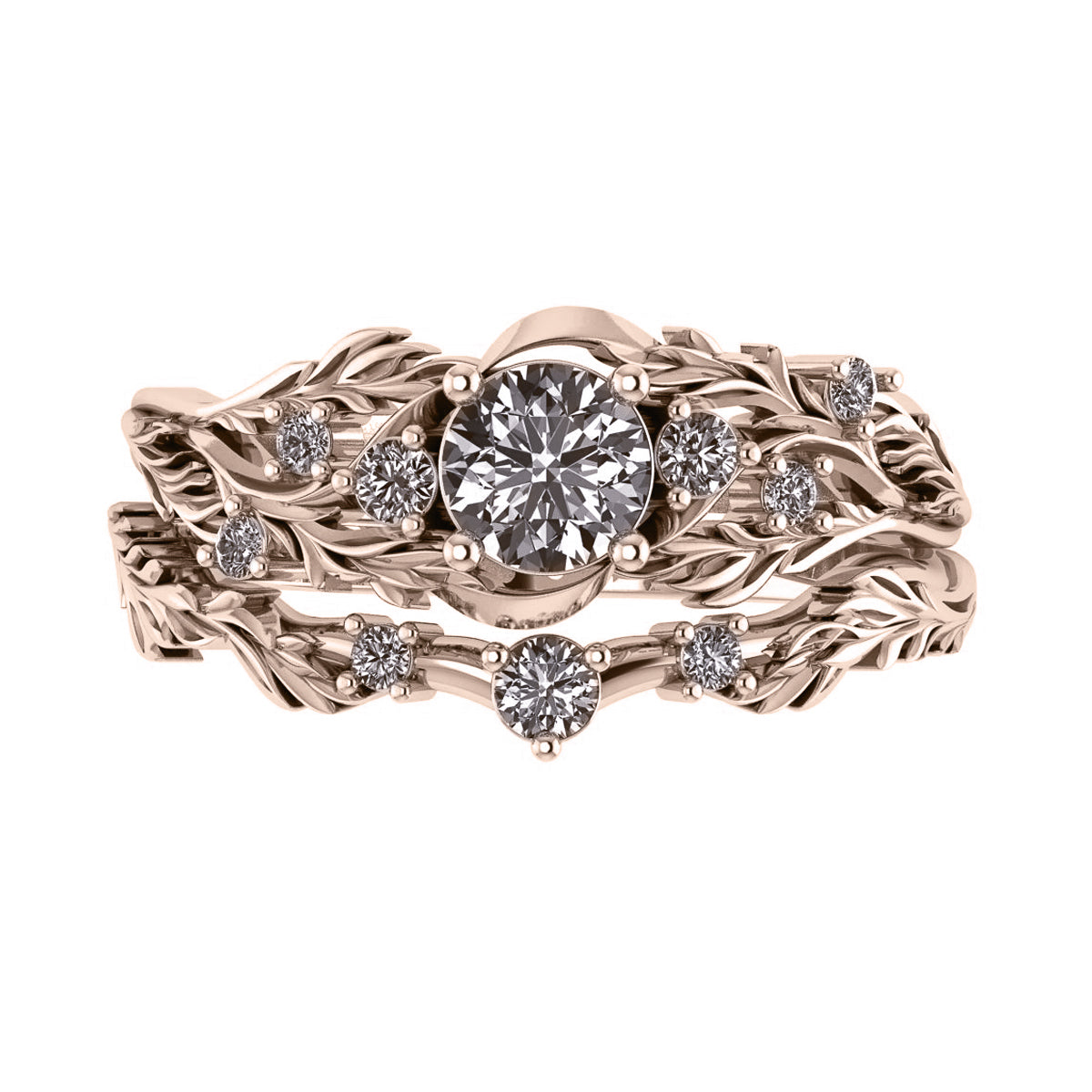 Japanese Maple | bridal ring set for round cut gemstone 5mm