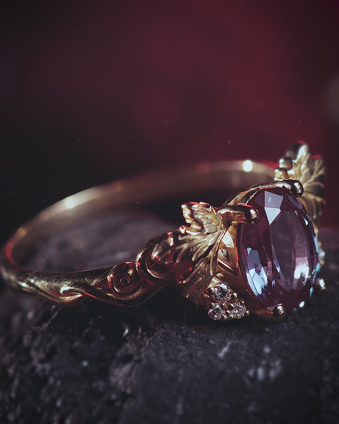 Lab-created alexandrite and lab grown diamonds engagement ring / Vineyard