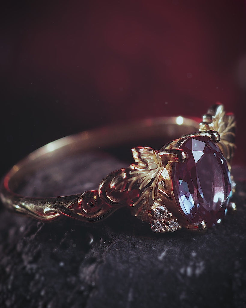 Lab-created alexandrite and lab grown diamonds engagement ring / Vineyard - Eden Garden Jewelry™