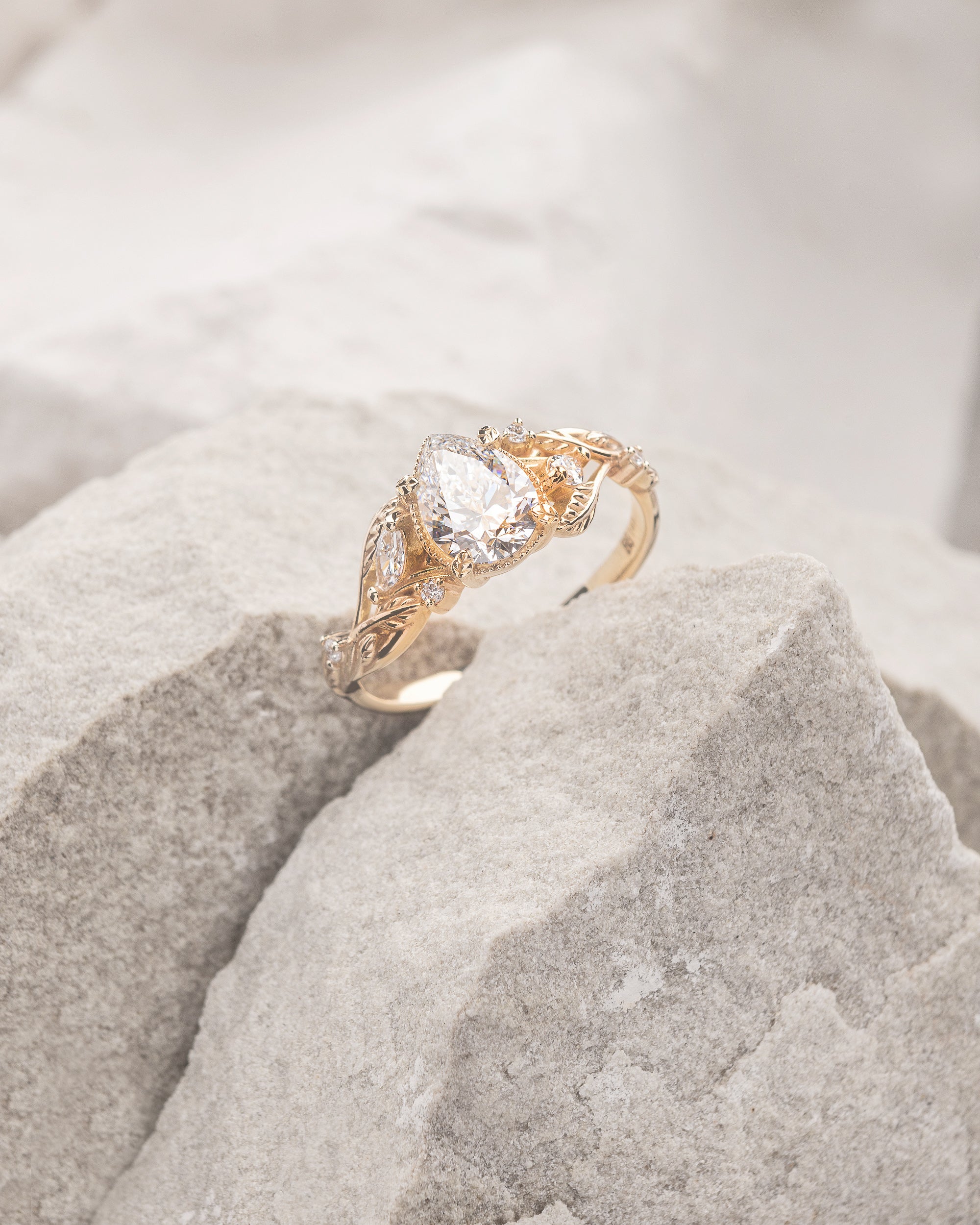 Patricia asymmetric | engagement ring setting with pear cut gemstone 8x6 mm - Eden Garden Jewelry™