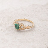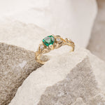 READY TO SHIP: Clematis engagement ring, lab emerald, 14K yellow gold, AVAILABLE RING SIZES: 5.5 - 8.5 US - Eden Garden Jewelry™