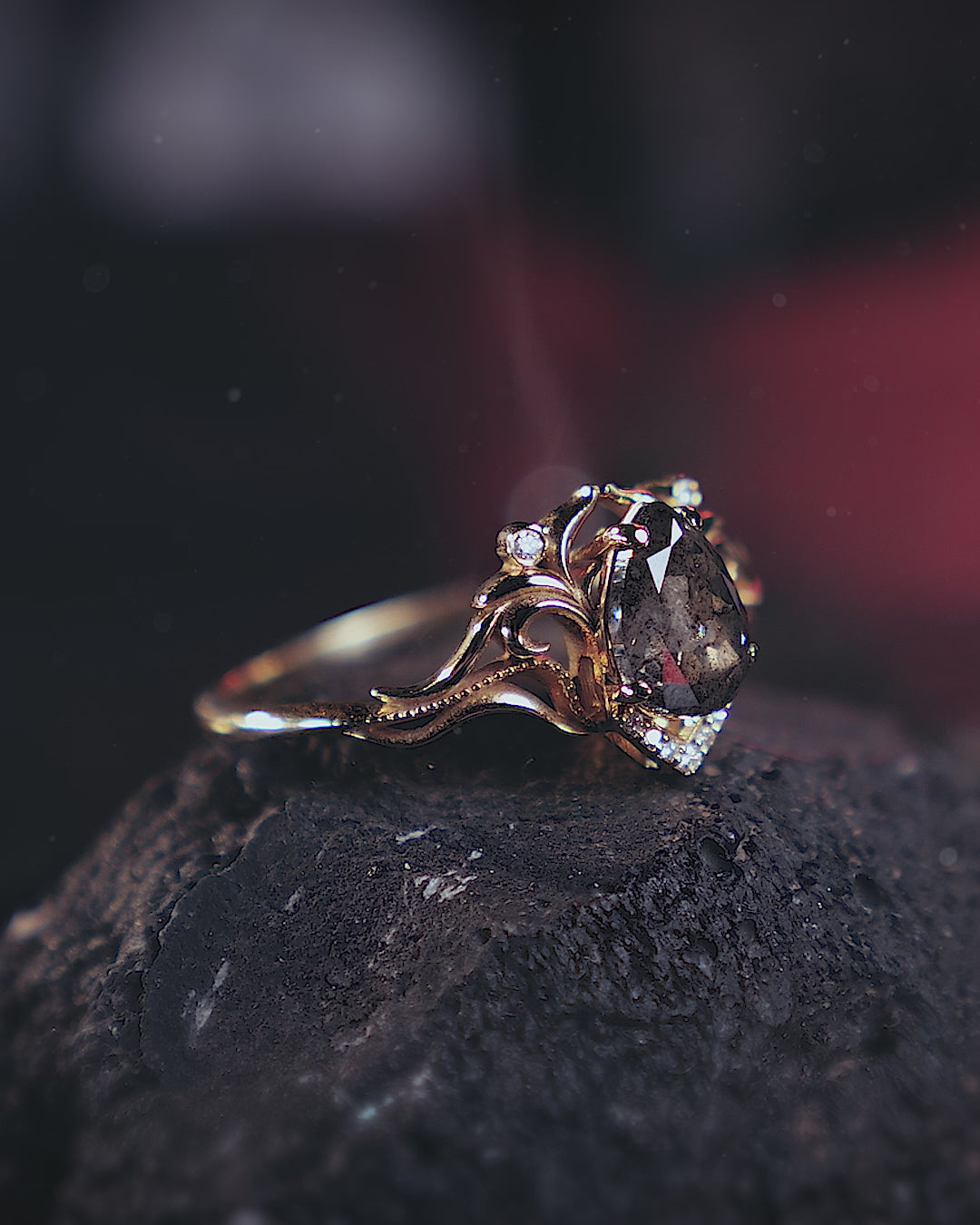 READY TO SHIP: Lida engagement ring with pear cut salt & pepper diamond, 14K yellow gold, RING SIZES: 7 - 9.5 US - Eden Garden Jewelry™