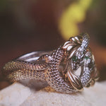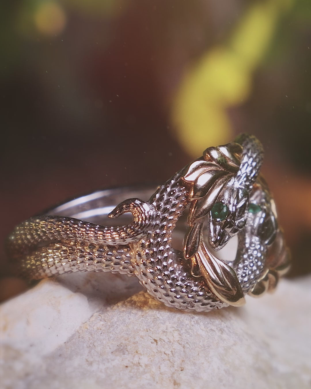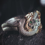 Ring of Barahir in two tone gold, snakes ring with emeralds - Eden Garden Jewelry™