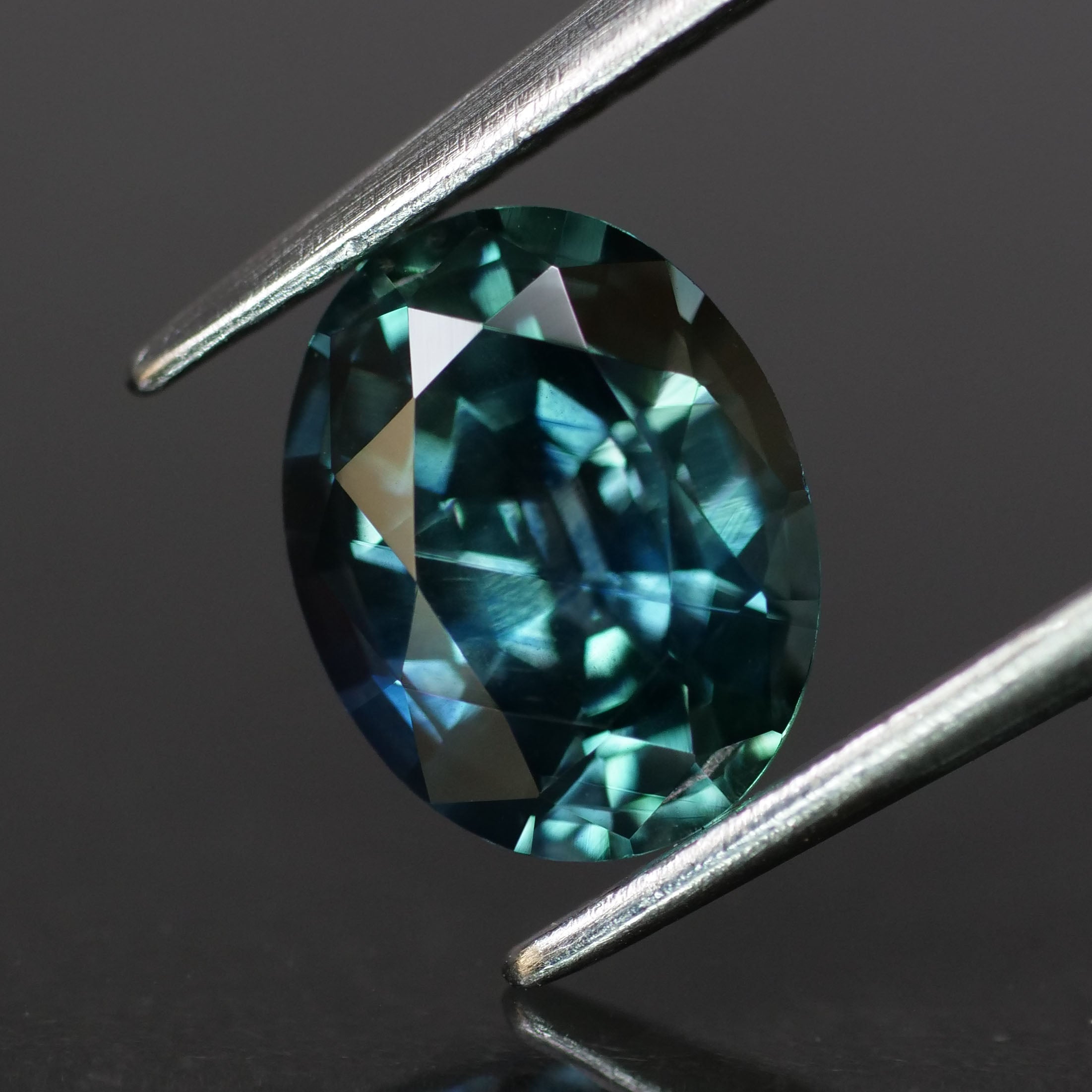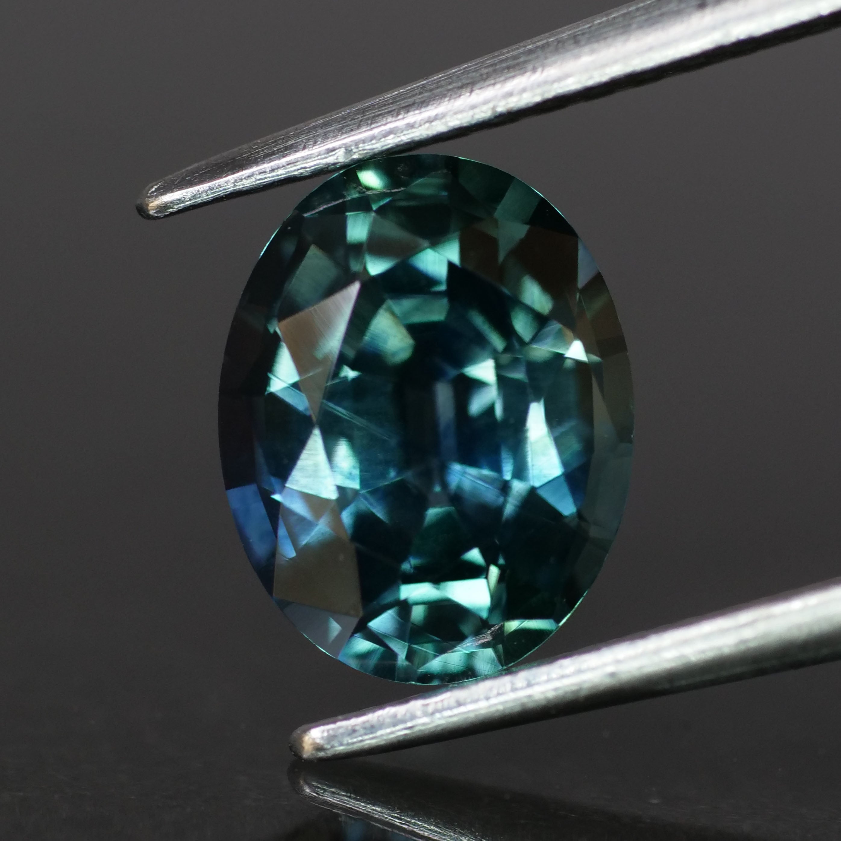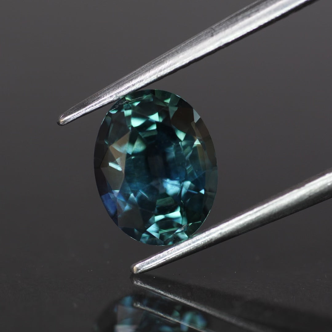 Sapphire | natural, teal color, oval-cut, *8x6.5mm, 1.9ct