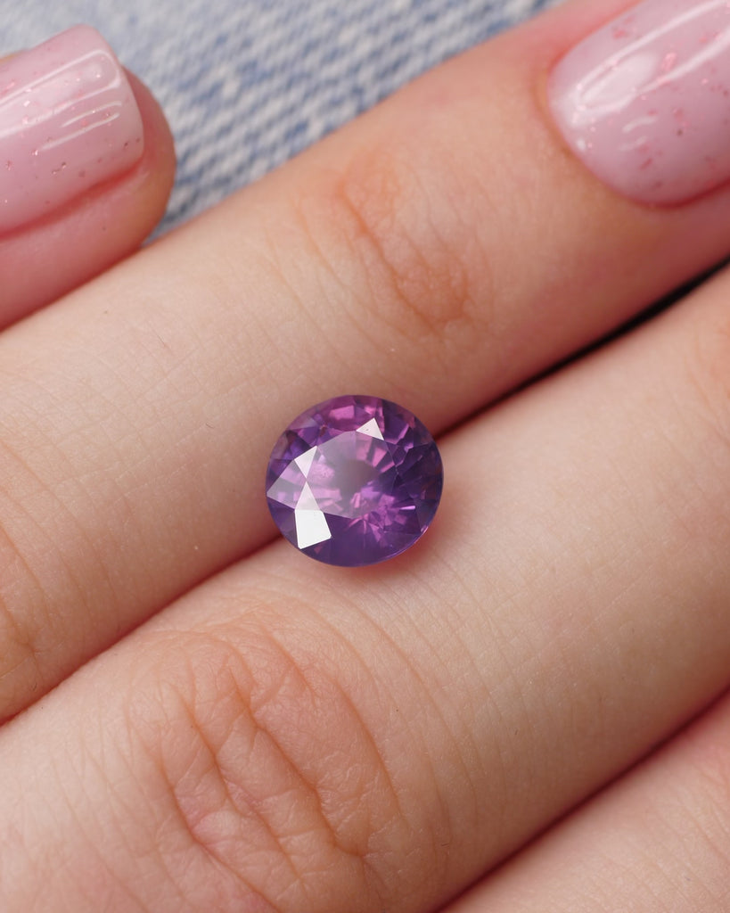Opalescent sapphire | IGI certified | natural, deep pinkish purple, round-cut, 7.5mm, 2.2ct - Eden Garden Jewelry™