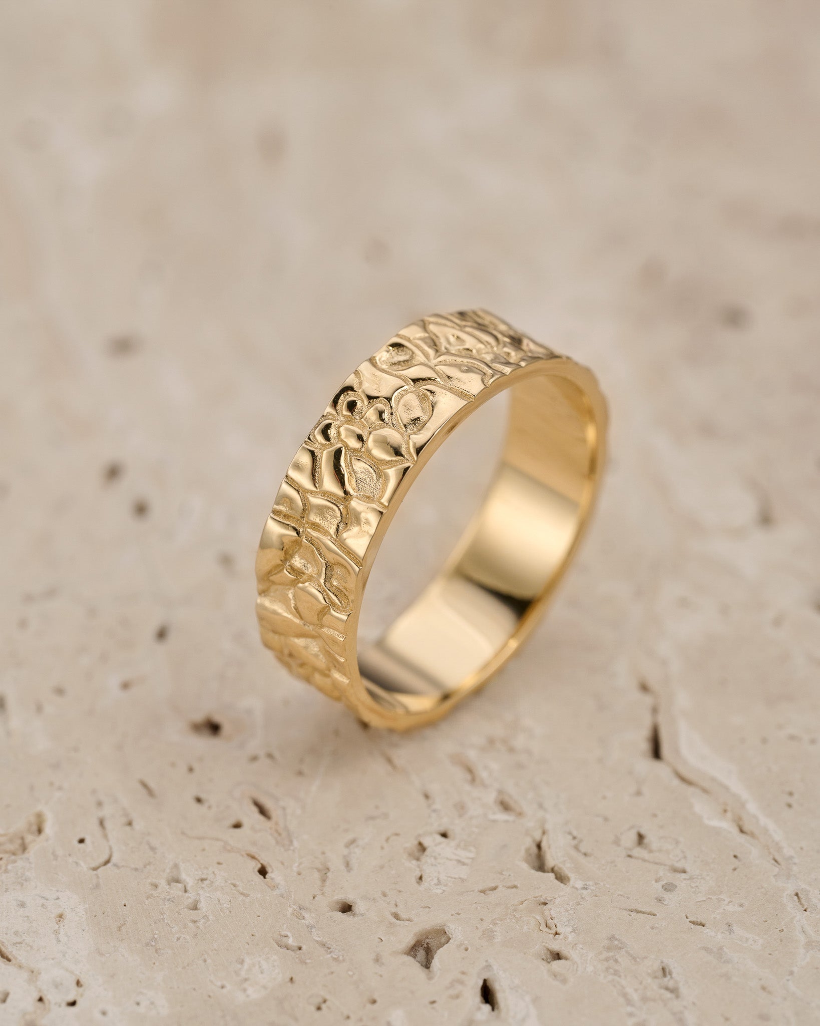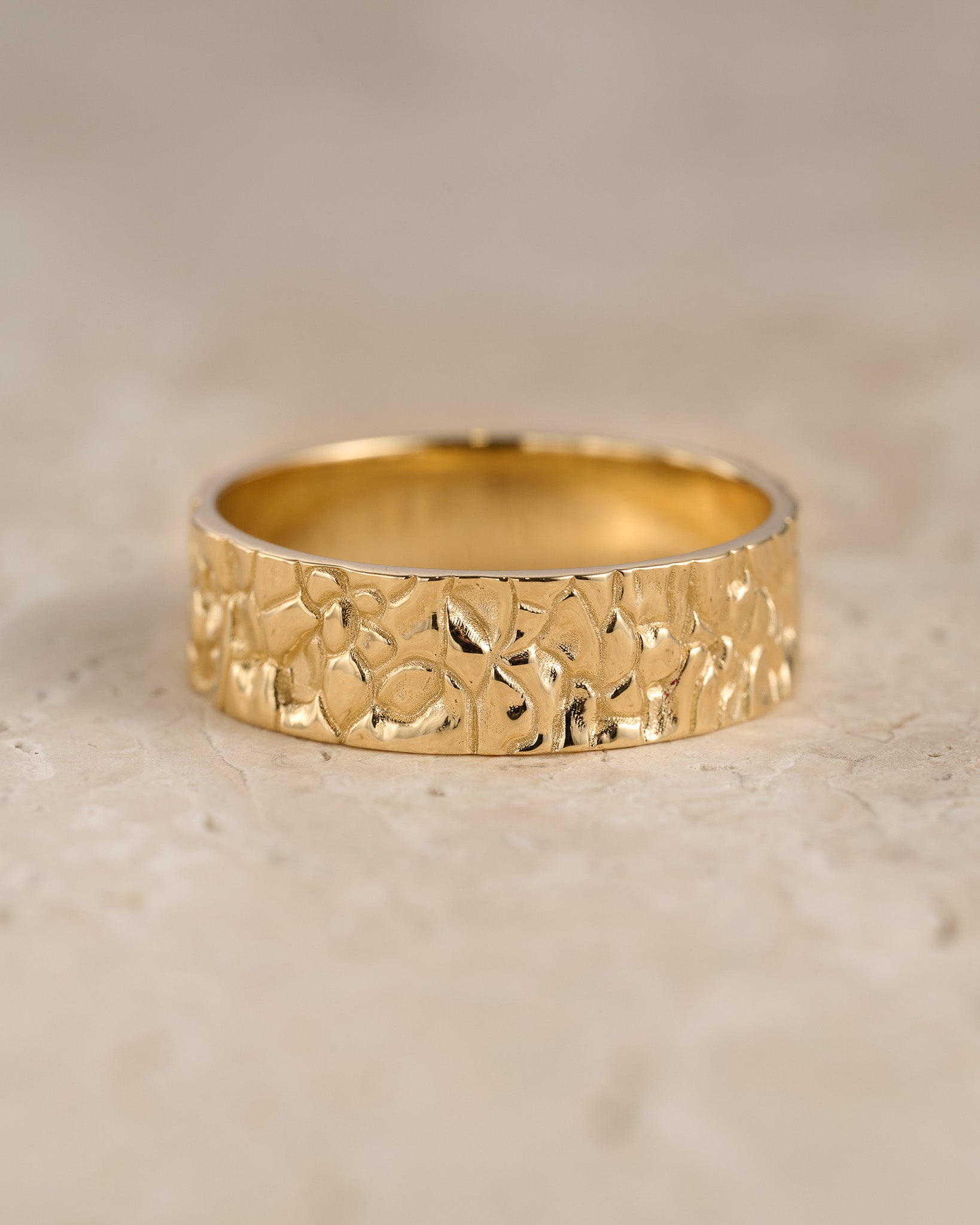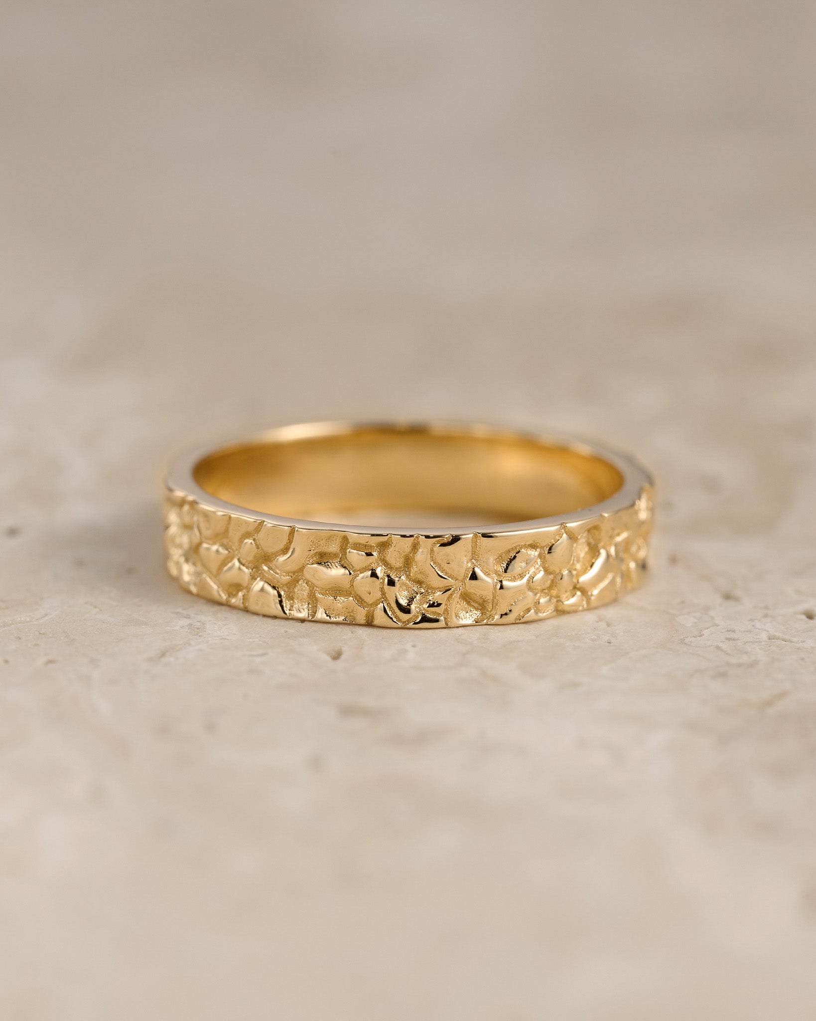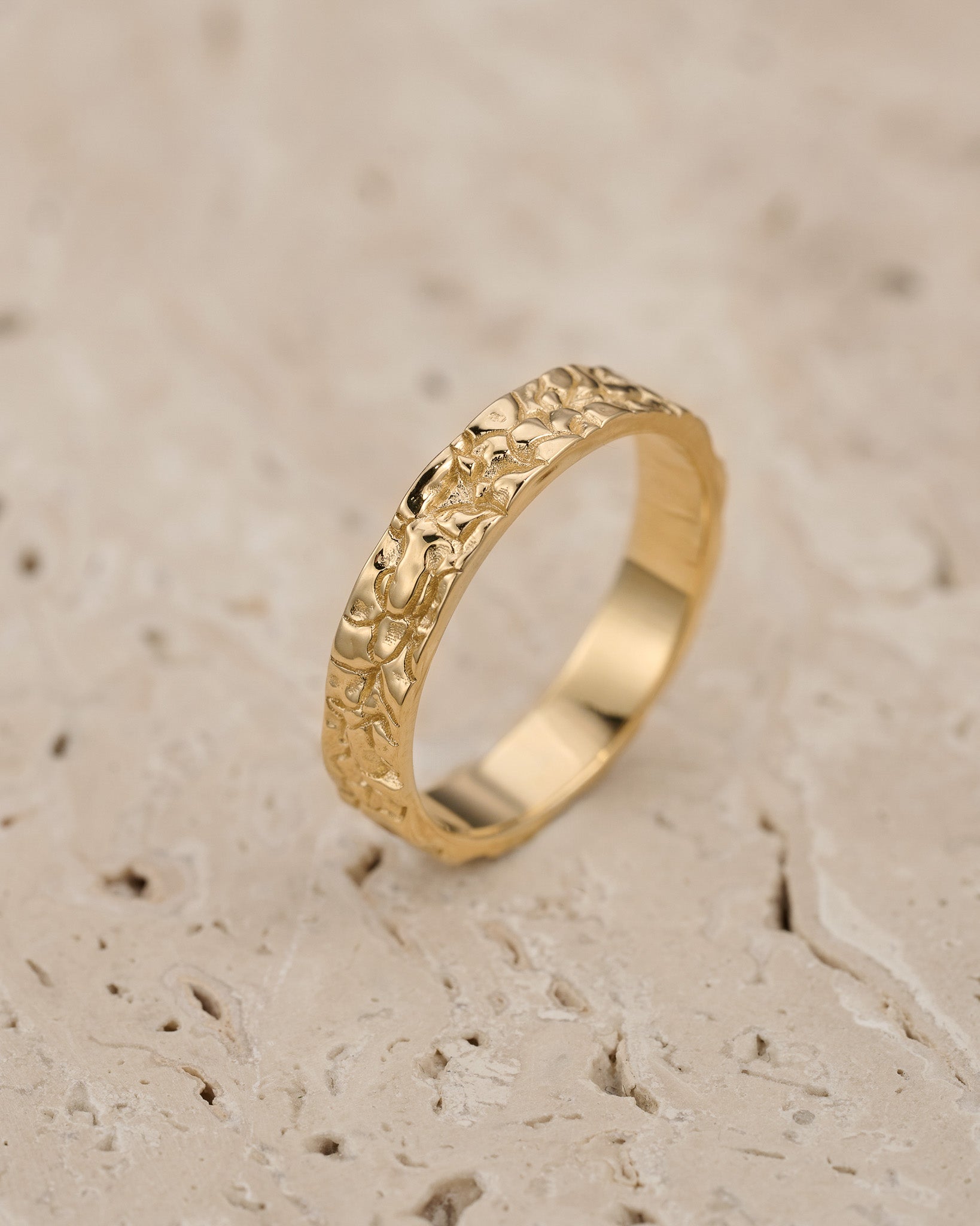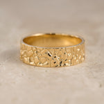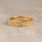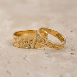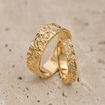 Unusual wedding bands for couple feature unique rock surface. Textured unisex ring looks original and modern, you won't find anything similar mass produced. Stylish wedding ring is comfortable for everyday wear. Will be made in requested size and desirable gold colour.
